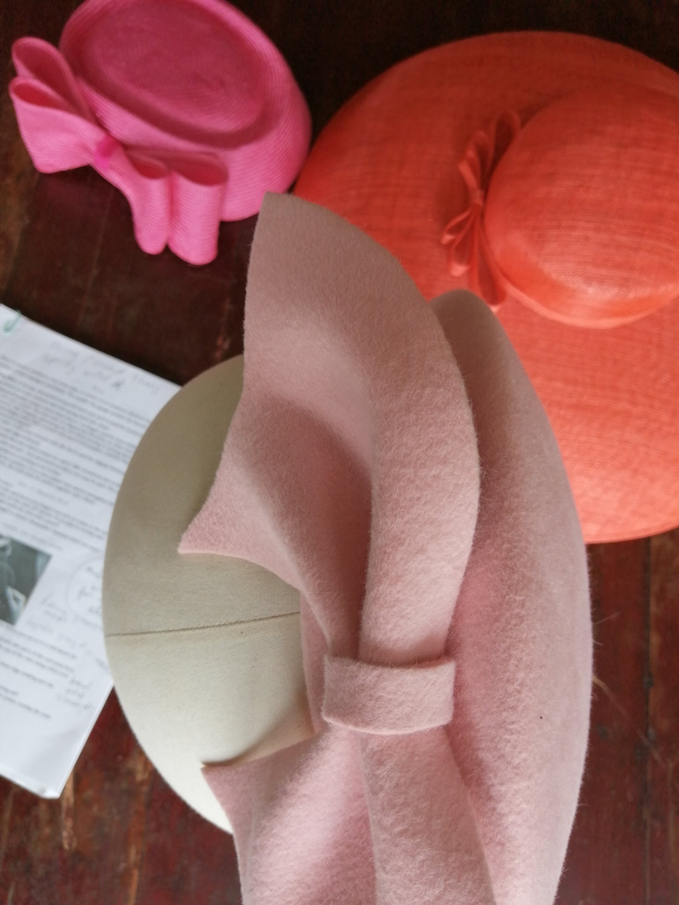 I have just completed a millinery course with Aoife. The course was really fantastic and I have to say I learned an awfull lot about millinery in general. Aoife provides a truly excellent course from start to finish accompanied by detailed notes. On the course I completed you will learn the skill of blocking three very different materials using three blocks of your choice (I felt like a kid in a sweet shop). Once the materials have been shaped and stiffened one is introduced to the various skills of hand stitching edges, wires, Petersham, etc. and of course finishing each piece to a very high standard. Aoife has a vast knowledge of millinery and this becomes very apparent when she talks about blocks, fabrics and trimmings. This course has really opened my eyes to the quality and skills behind each piece and has introduced me to wonderful materials such as peachbloom felt and silk dupion, which I will use again and again. I would highly recommend a course with Aoife and I can’t wait to book another one. – Carole Halligan – Co. Dublin